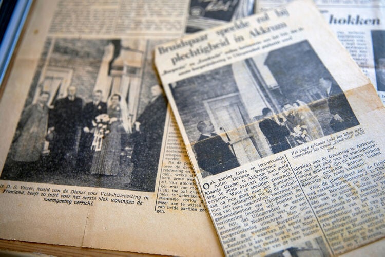 De bouw van de woningen was heel bijzonder. De huizenblokken werden betaald met donaties van de Akkrumer bevolking. Vandaar de namen Burgerzin en Eendracht. Het hele dorp leefde mee. Overal hingen vlaggen, de Harmonie speelde en zelfs landelijke kranten schreven erover. “Mijn ouders stonden die dag dus niet alleen in Akkrum in de schijnwerpers, maar in heel Nederland.”