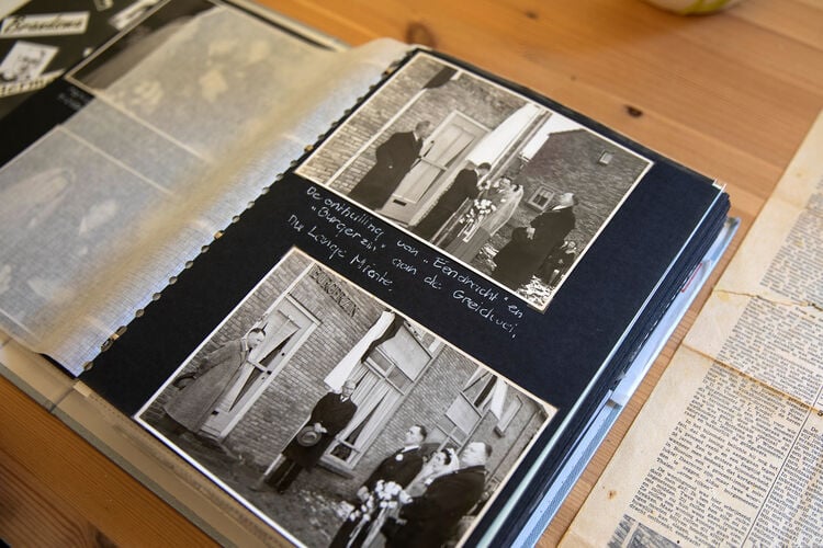 Ineke ontvangt ons bij haar thuis in Grou. Op tafel ligt een fotoboek met zwart-wit foto’s en krantenknipsels. “Kijk, ”zegt ze. “Dit zijn mijn ouders Herman Brandsma en Klaasje Grosso op hun trouwdag. Dat was op 30 januari 1952. De straat die nu Lange Miente heet, werd toen nog de Greidwei genoemd.” Het jonge stel was een van de eerste bewoners van de woningen. Het bruidspaar werd gevraagd de woningen feestelijk te ‘onthullen’.